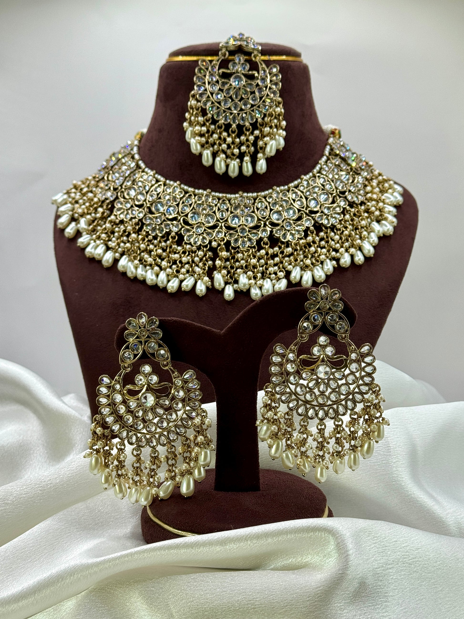 Polki statement necklace with 3-inch earrings & tikka