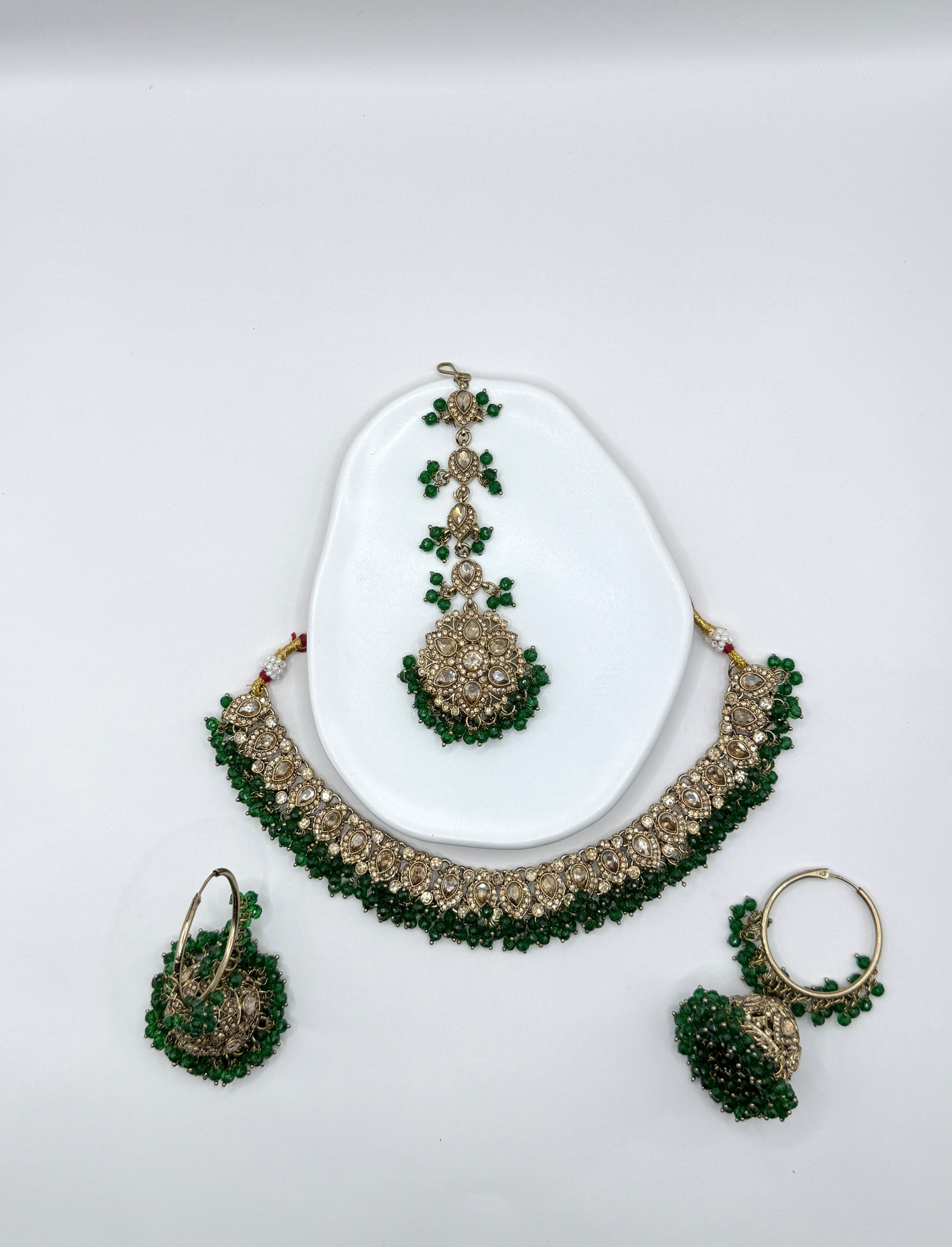 This Bali necklace set is crafted with absolute perfection, featuring 2.8-inch Bali-style earrings and a matching tikka. Delicate small beads add an elegant and modern touch, making this set perfect for any occasion.