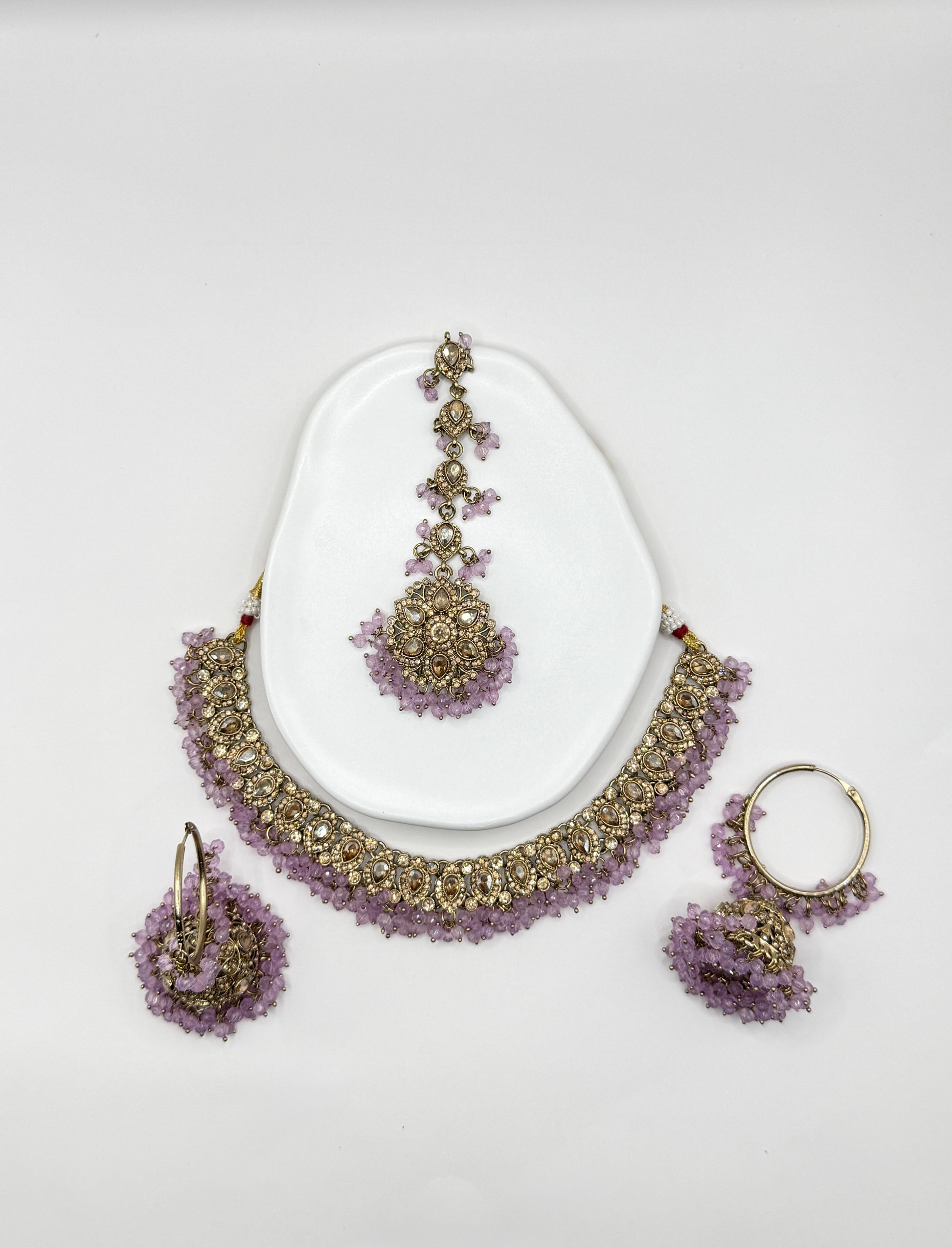 This Bali necklace set is crafted with absolute perfection, featuring 2.8-inch Bali-style earrings and a matching tikka. Delicate small beads add an elegant and modern touch, making this set perfect for any occasion.