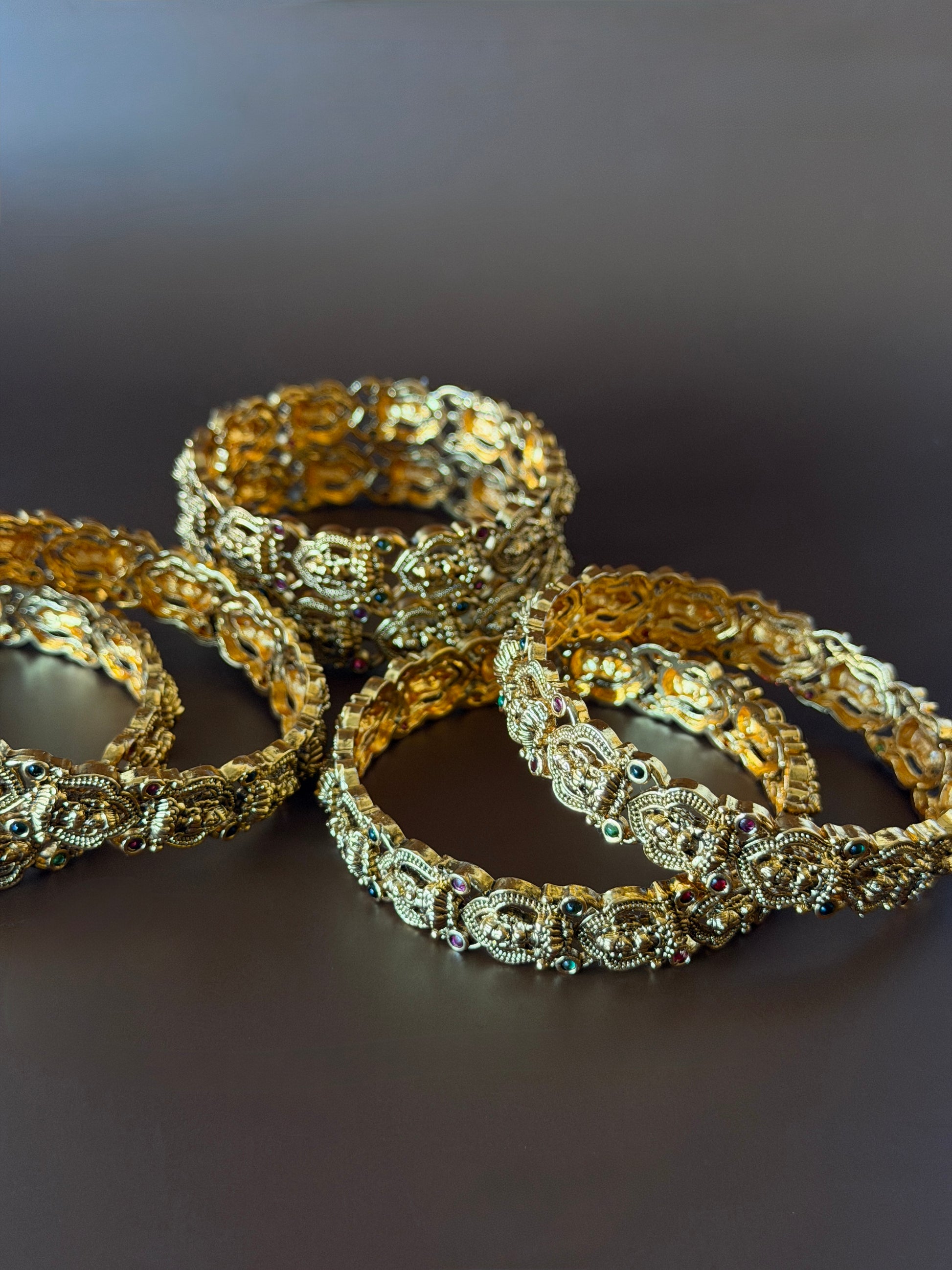 Set of 2 Lakshmi Kadas – Elegant bangles symbolizing prosperity and good fortune, perfect for festive wear, poojas, or gifting. Traditional design meets timeless elegance.
