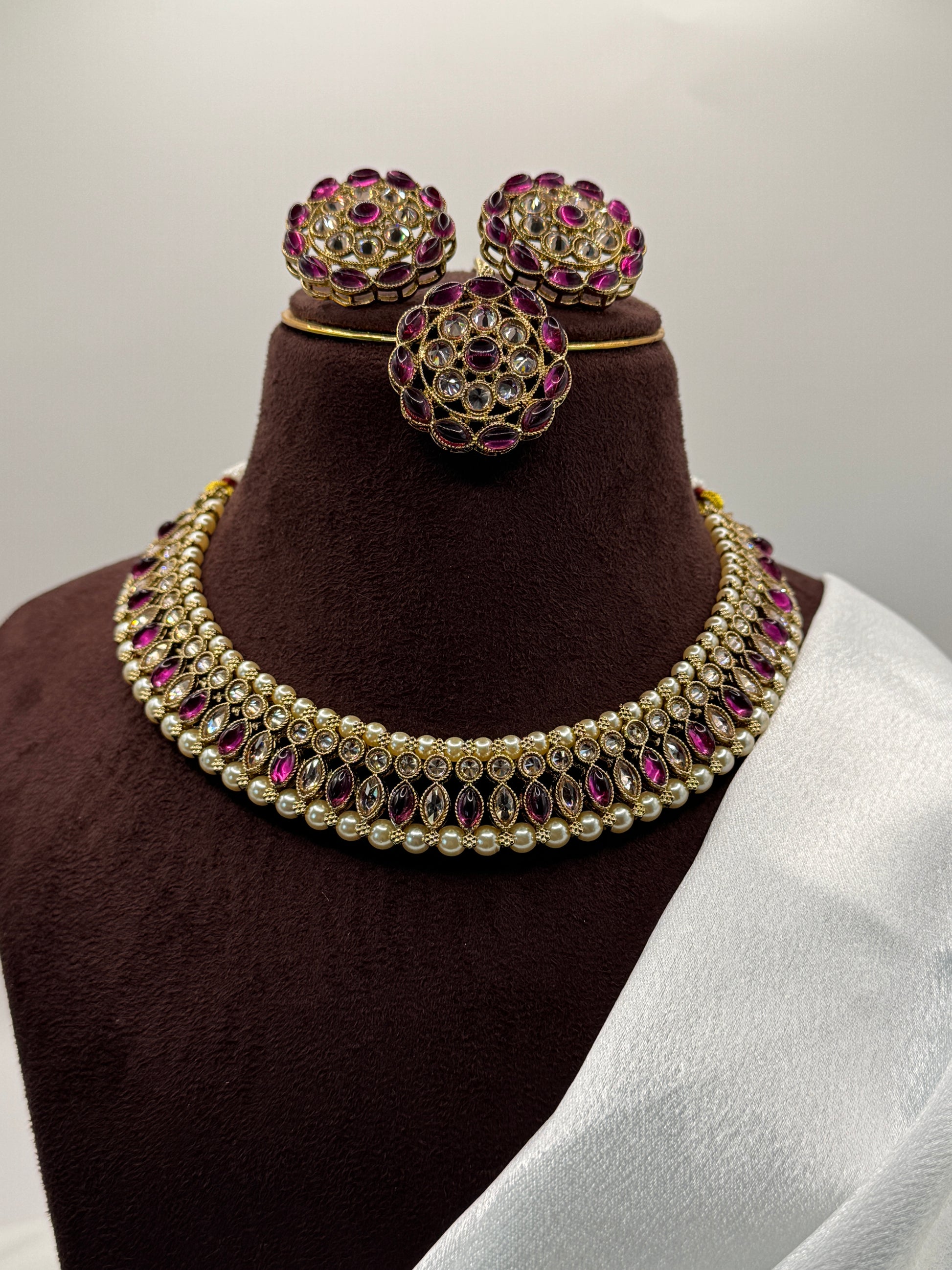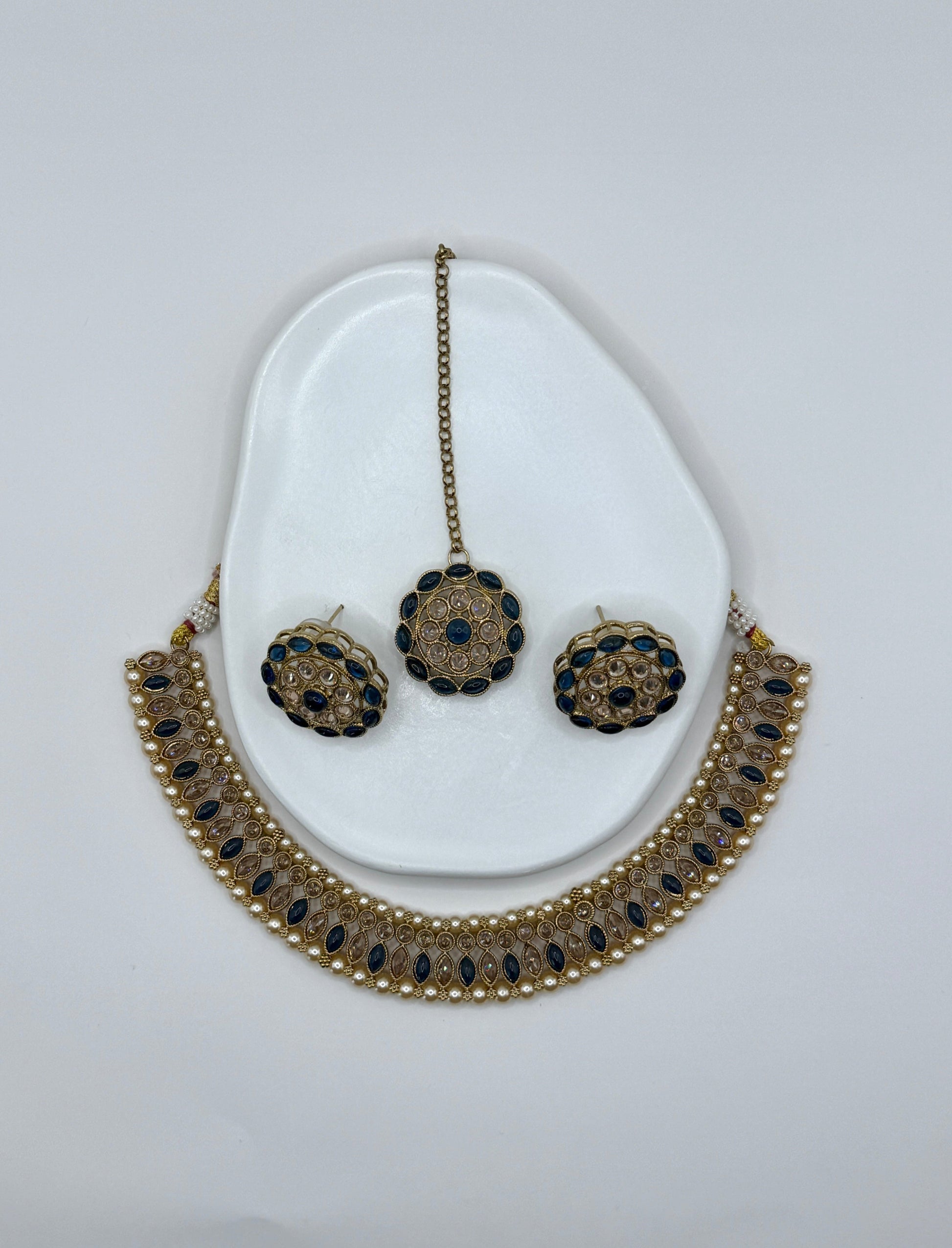 Beautiful, simple, and elegant — this Polki necklace set comes with matching 1-inch studs and a tikka. Perfect for any occasion, it adds just the right amount of sparkle without feeling heavy.