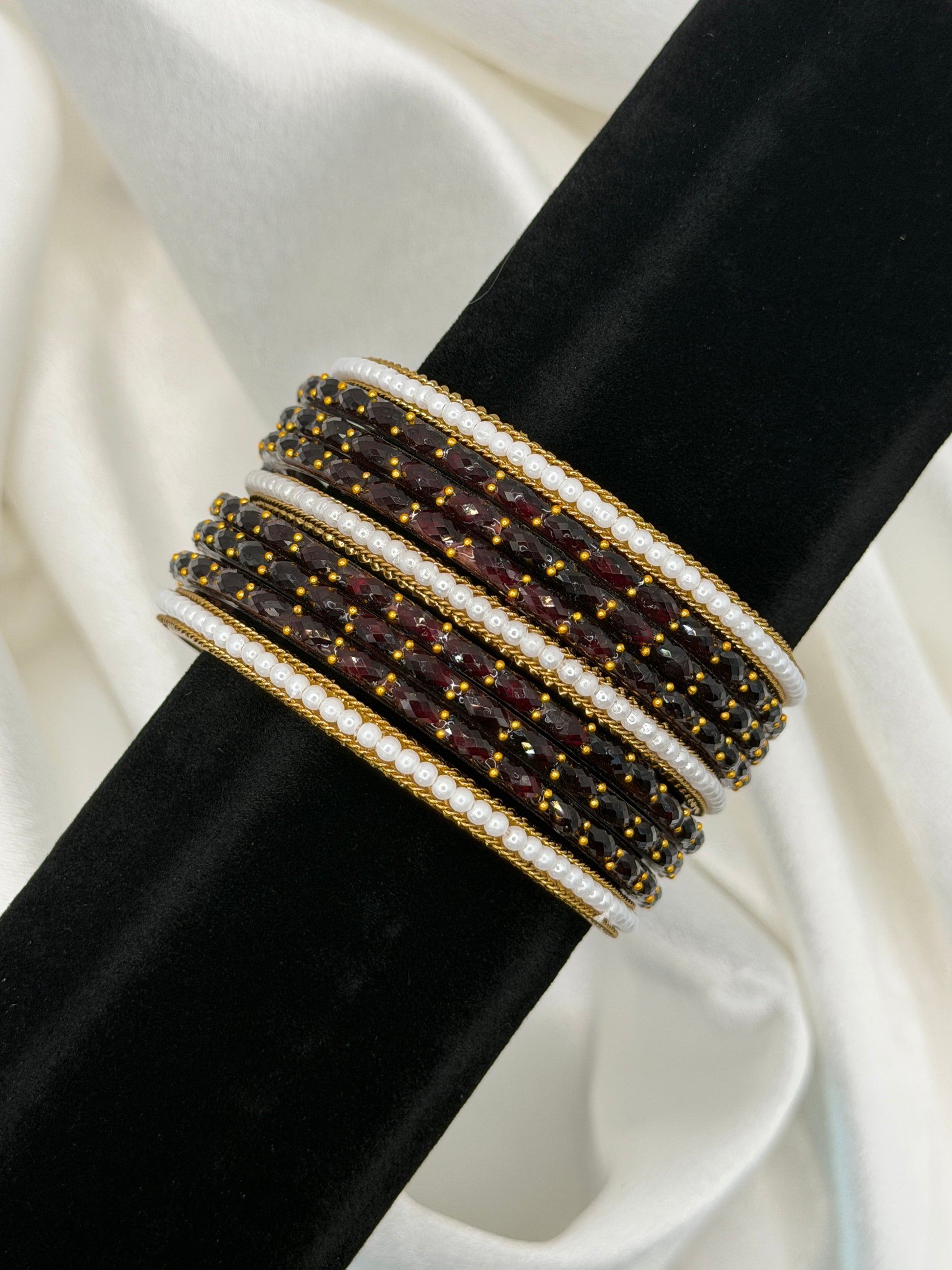 Set of 6 glass bangles with 3 pearl bangles – a lovely mix for everyday or special occasions.