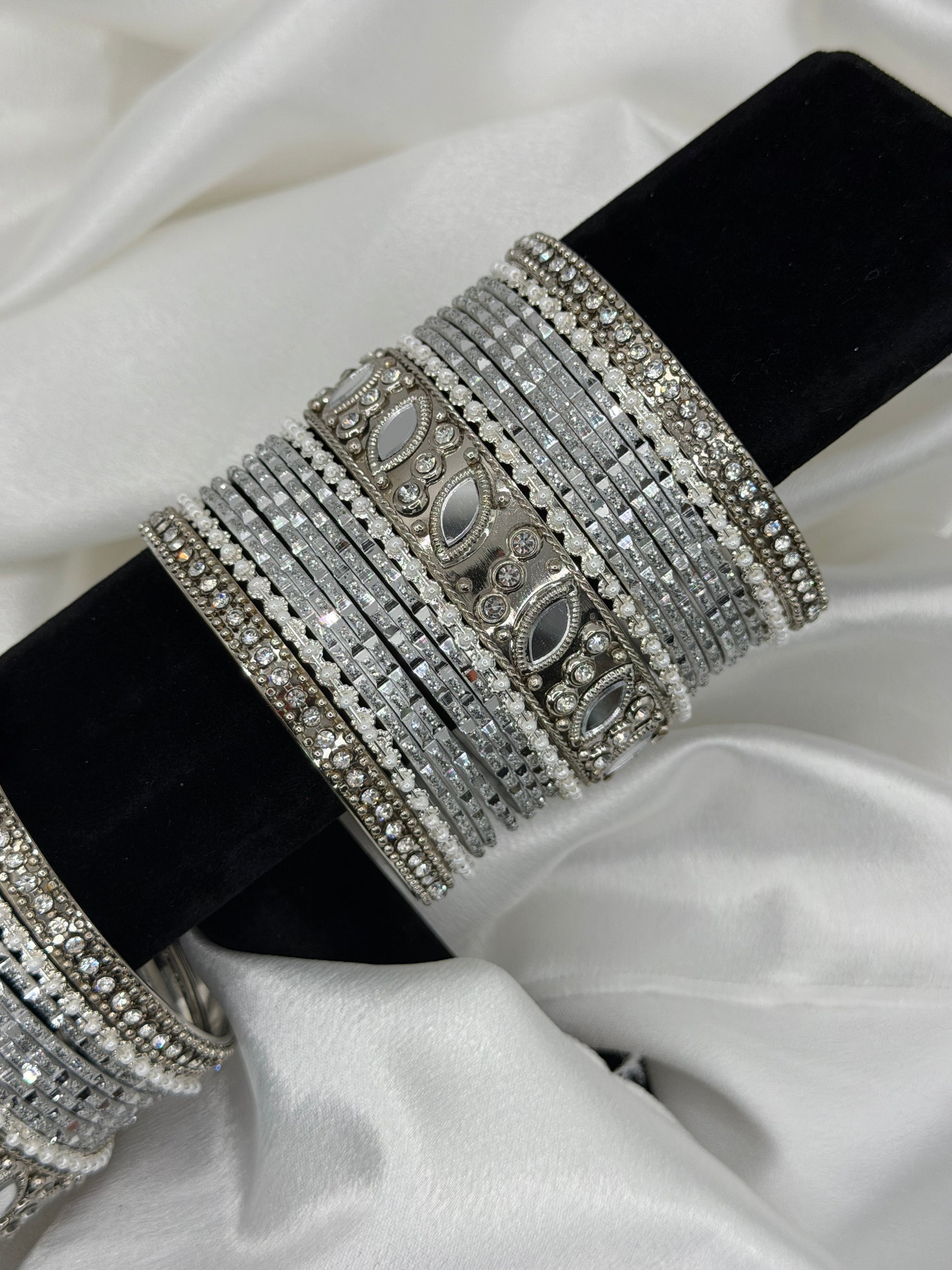 Give your look a fresh update with this set of silver bangles. They’re lightweight, easy to wear, and perfect for stacking or rocking on their own. Whether you’re dressing up or keeping it chill, these bangles add just the right amount of shine.
