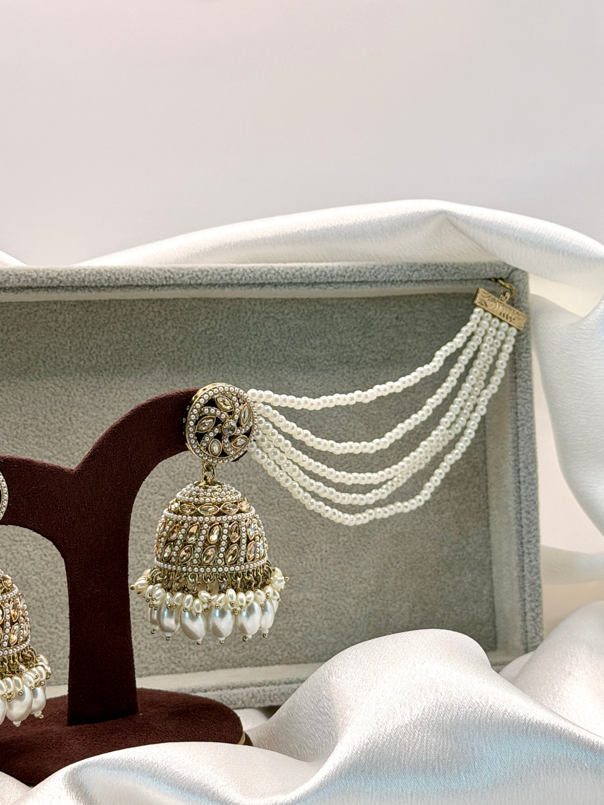 These 4-layer Sahara earrings in a warm golden finish, sprinkled with white pearls and beads, are the perfect mix of classy and fun. They’re lightweight and easy to wear, adding just the right pop of sparkle to any outfit—whether it’s a casual day out or a special occasion.