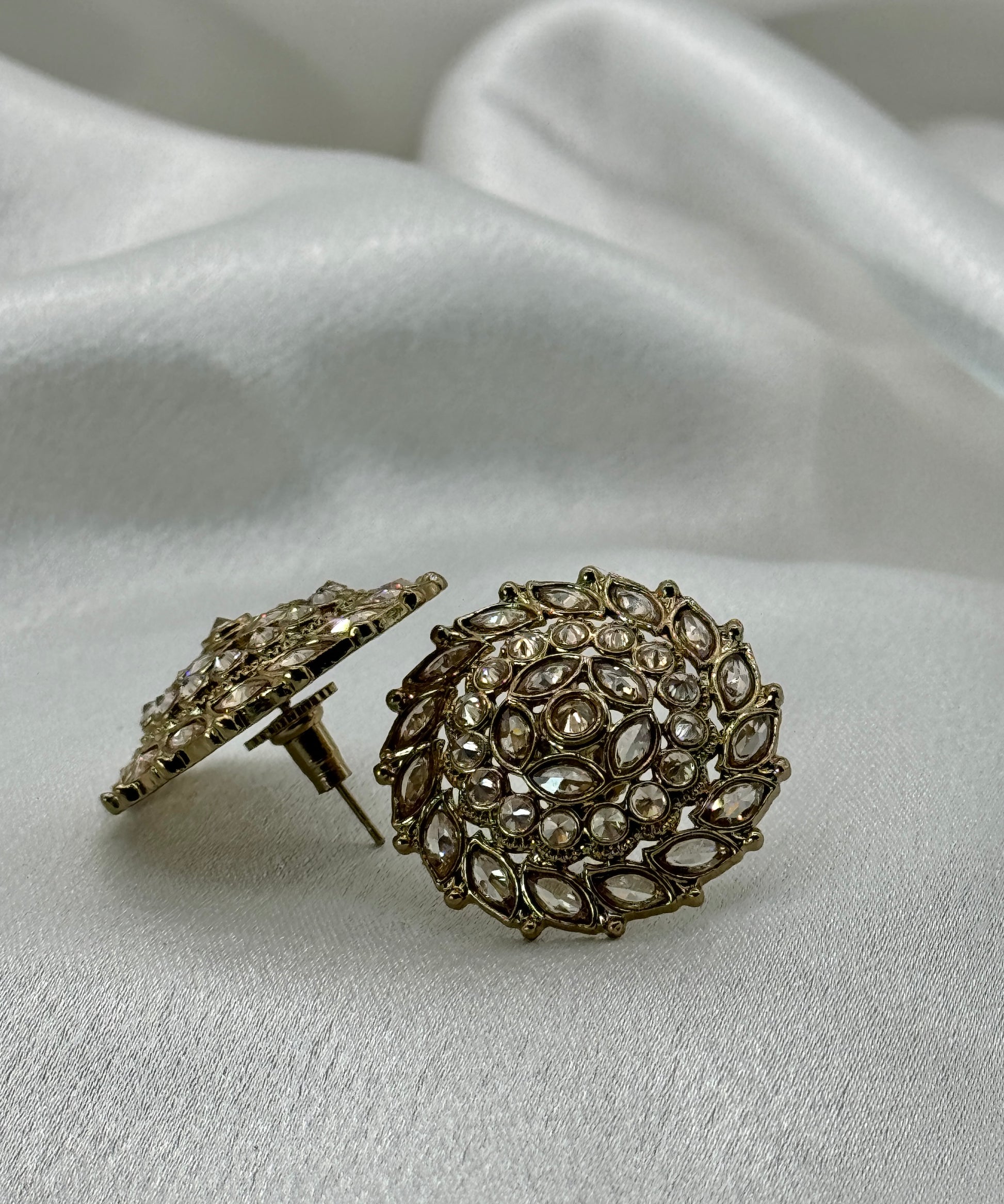 Make a bold statement without the weight! These golden Polki oversized studs are 1.4 inches of pure sparkle and style, yet super lightweight so you can wear them all day without any hassle. Perfect for adding that extra glam to your look, whether it’s a casual day out or a special occasion.